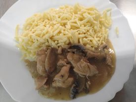 Kuřecí maso na houbách, špecle