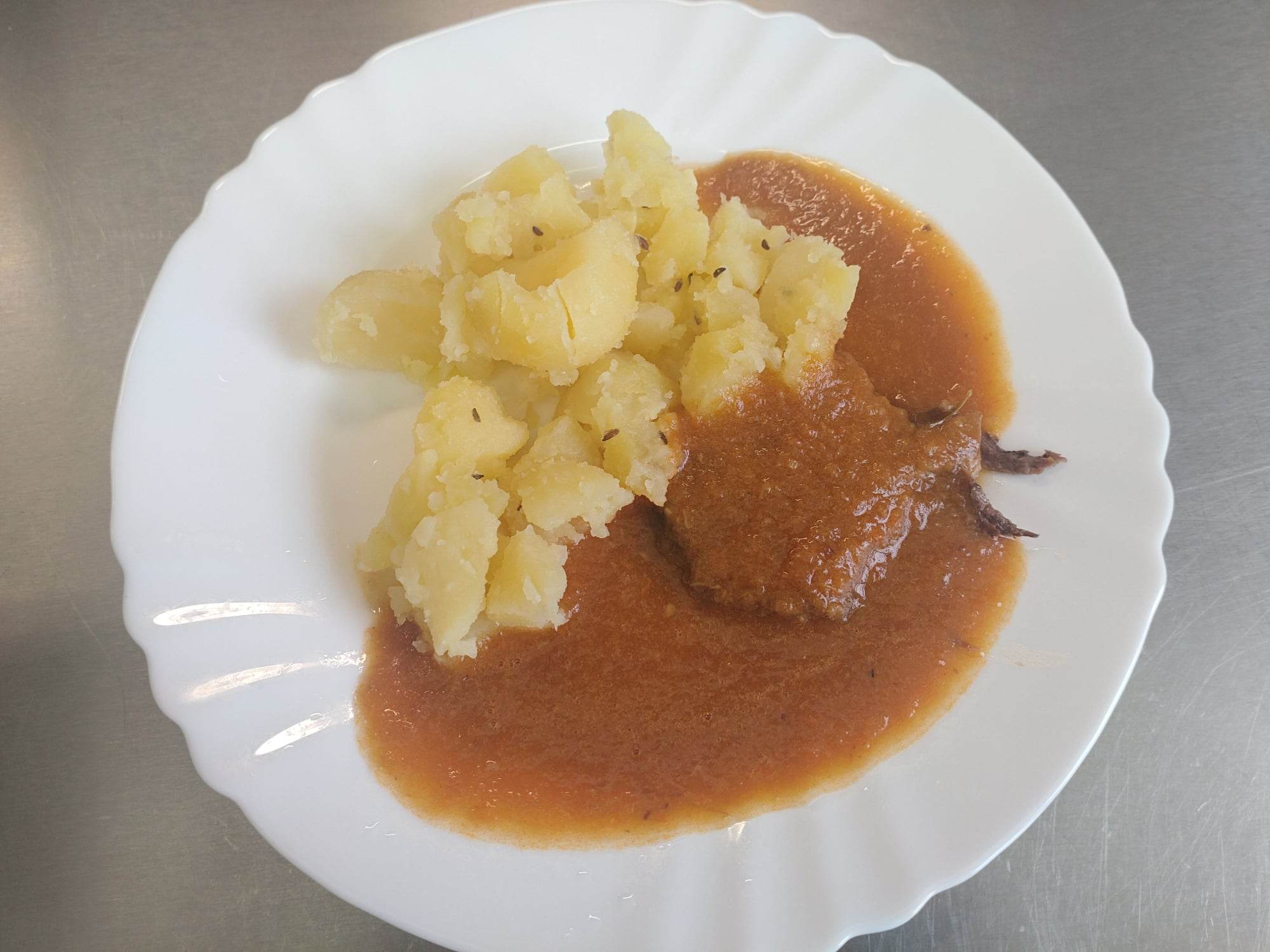 Hovězí maso po burguňsku, brambory