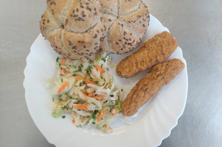 Kuřecí nugetky na zeleninovém salátě, pečivo